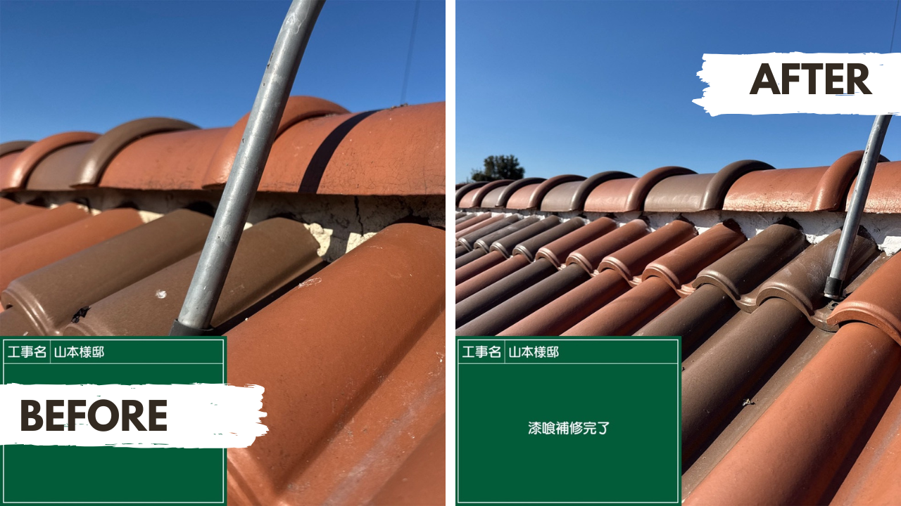 意外と見落としがちなのが屋根の漆喰です。瓦のズレや雨漏りを未然に防ぐため、屋根漆喰の詰め直しを丁寧に行いました。川越の風土に合わせた、長く安心できる屋根メンテナンスです。