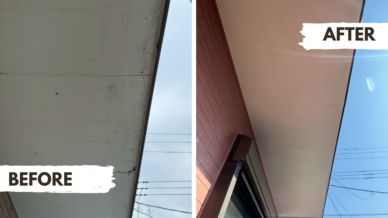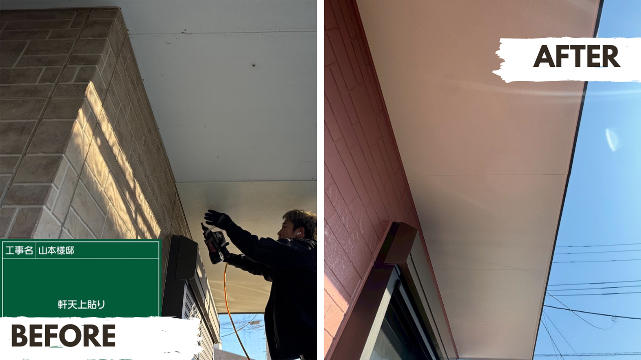 湿気で傷みやすい軒天は、上貼り工法で耐久性をアップ。お住まいのアクセントとなる幕板も新品に交換し、新築のような美しさを取り戻しました。